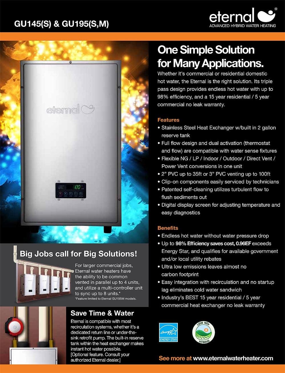No job is too big or too small. In addition to our outstanding and prompt service, we offer senior citizen discounts. Our featured product lines are Baxi and their high-efficiency, European-design wall hung combination boilers, and Eternal Hybrid Hot Water Heater. With the Eternal hybrid water heater, you get endless hot water without sacrificing water pressure. Its compact stainless steel design is up to 98% efficient, durable, and leaves almost no carbon footprint. We can also satisfy all of your hot water requirements, no matter how small or large they are! We sell, service and install these products. For more information on our products, or to schedule an appointment, please call us at 508-221-8209. We look forward to doing business with you! |